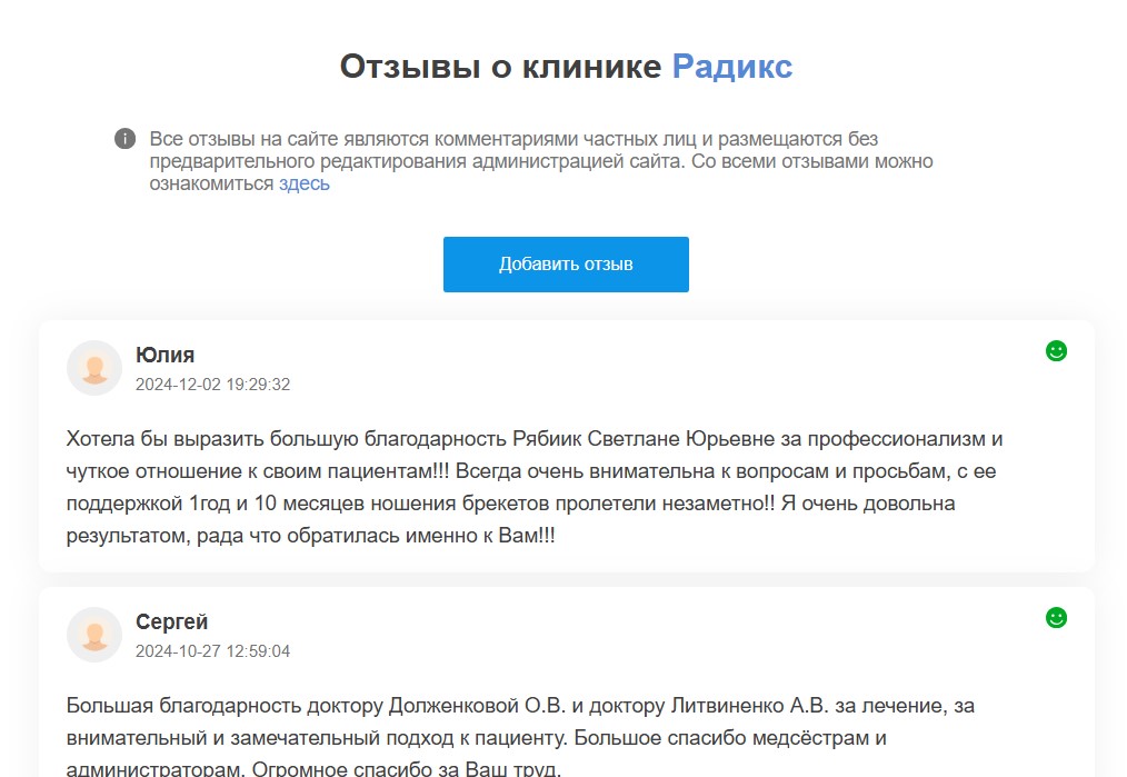 Рекламодатели могут бесплатно подключить функцию модерации отзывов в настройках продвижения, чтобы скрывать нежелательные комментарии посетителей портала. В этом случае в разделе отзывов будет указано, что они модерируются представителями центра. При отключении продвижения на портале модерация автоматически отключается, скрытые отзывы снова будут опубликованы.